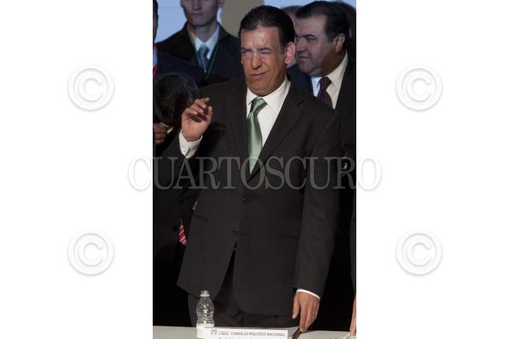 MÉXICO, D.F., 02DICIEMBRE2011.- Humberto Moreira, presentó su renuncia ante el Consejo Político del PRI. Esto tras largos meses en los que se exhibió una serie de irregularidades en una serie de créditos obtenidos por el gobierno coahuilense en la gestión del Moreira. El profesor Moreira indico que deja el partido por que no permitirá que se le haga daño por lo que denomino una "Guerra Mediática". En su lugar tomó protesta Cristina Díaz ante un auditorio Plutarco Elías Calles del CEN del PRI. FOTO: MOISÉS PABLO/CUARTOSCURO.COM