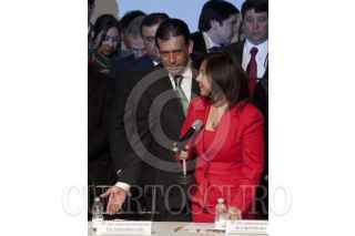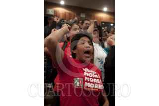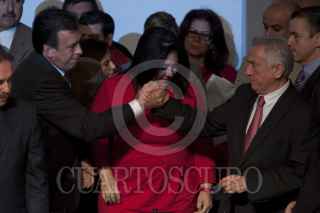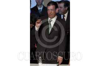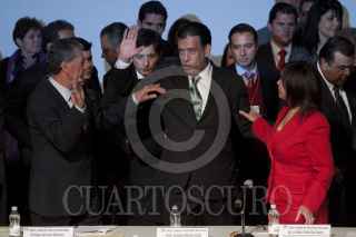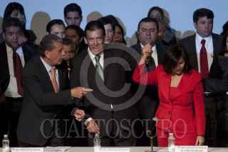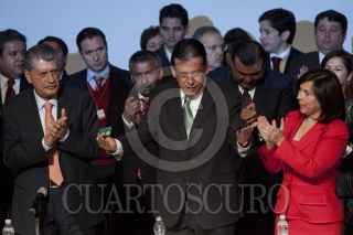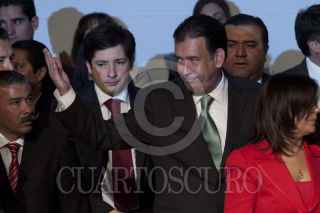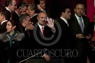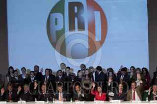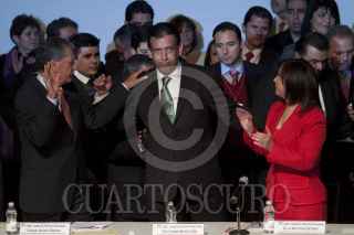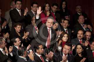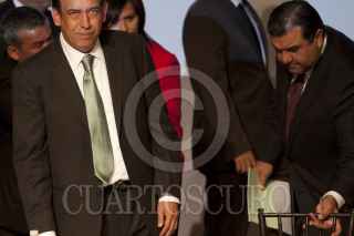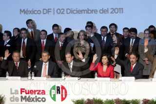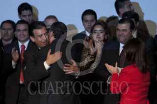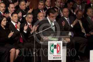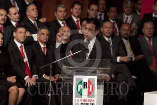 MÉXICO, D.F., 02DICIEMBRE2011.- Humberto Moreira, presentó su renuncia ante el Consejo Político del PRI. Esto tras largos meses en los que se exhibió una serie de irregularidades en una serie de créditos obtenidos por el gobierno coahuilense en la gestión del Moreira. El profesor Moreira indico que deja el partido por que no permitirá que se le haga daño por lo que denomino una "Guerra Mediática". En su lugar tomó protesta Cristina Díaz ante un auditorio Plutarco Elías Calles del CEN del PRI. FOTO: MOISÉS PABLO/CUARTOSCURO.COM