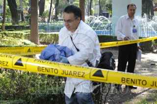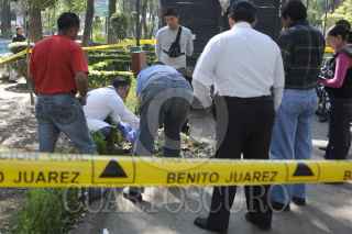 MÉXICO, D.F., 02DICIEMBRE2011.- Personal de Limpia de la Delegación Benito Juárez, hallaron un feto de aproximadamente 7 meses de gestación al interior de una bolsa entre la basura del parque ubicado en las calles Pensilvania y Georgia en la colonia Nápoles. Elementos periciales acudieron al ligar para trasladar los restos al anfiteatro en esta demarcación. FOTO: LUIS CARBAYO/CUARTOSCURO.COM