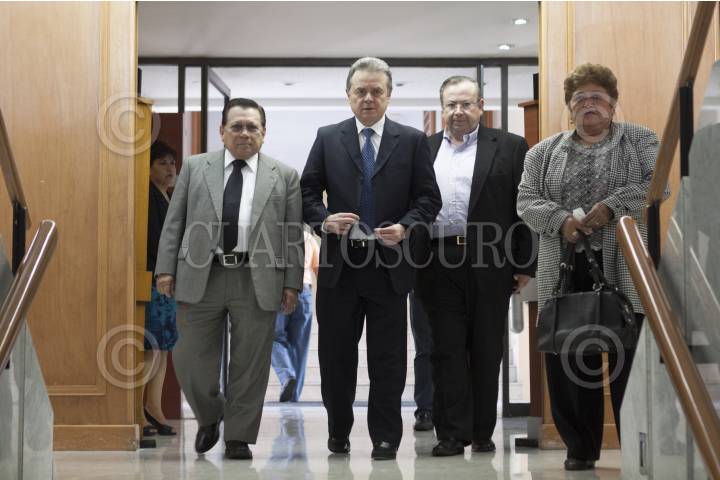 MÉXICO, D.F., 03DICIEMBRE2011.- Manlio Fabio Beltrones, coordinador de los senadores del PRI, y saluda a Oscar Rodríguez Cabrera, hijo de Rafael Rodríguez Barrera quien falleció por la madrugada de un paro cardíaco. El político priista fue Secretario de la Reforma Agraria en el sexenio de Miguel de la Madrid, apenas el día de ayer participó en el Consejo Nacional Político del partido tricolor. FOTO: MOISÉS PABLO/CUARTOSCURO.COM