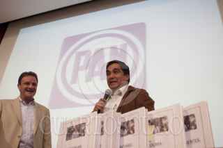 MÉXICO, D.F., 03DICIEMBRE2011.- José Espina Von Roehrich, presidente de la Comisión Nacional de Elecciones del PAN, recibió las firmas de apoyo para resolver su registro como precandidatos ante la Comisión Nacional de Elección del PAN. En la imagen el senador Sergio Álvarez Mata entregó las carpetas de firmas de Santiago Creel. FOTO: MOISÉS PABLO/CUARTOSCURO.COM