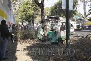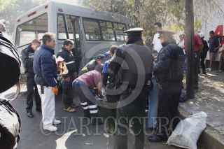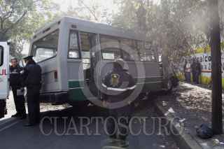 MÉXICO, D.F., 03DICIEMBRE2011.- Nueve personas resultaron con lesiones graves al impactarse el microbús de la Ruta 1 en el que viajaban. La unidad se estrelló contra un árbol en Avenida Camarones y Norte 73 de la colonia Obrero Popular Delegación Azcapotzalco. Los lesionados, atendidos y trasladados por unidades de Cruz Roja y ERUM. FOTO: LUIS CARBAYO/CUARTOSCURO.COM