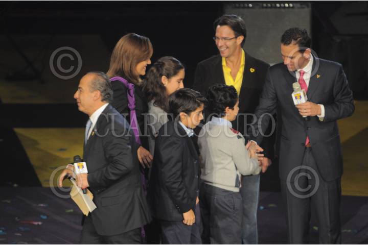 MÉXICO, D.F., 03DICIEMBRE2011.- El presidente de la República, Felipe Calderón Hinojosa, acudióa al cierre del Teletón en el Auditorio Nacional la noche de hoy para realizar su donativo. FOTO: FRANCISCO RODRÍGUEZ/CUARTOSCURO.COM