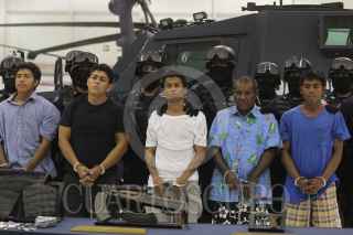 MÉXICO, D.F., 05DICIEMBRE2011.- Personal de la Policía Federal presentaron ante los medios de comunicación a seis presuntos miembros de la organización delictiva Cártel Independiente de Acapulco (Cida), entre los detenidos se encuentra Gilberto Castrejón Morales, El Comandante Gil, líder de esa célula delictiva. FOTO: SAÚL LÓPEZ/CUARTOSCURO.COM