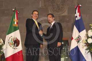 MÉXICO, D.F., 06DICIEMBRE2011.- Marcelo Ebrard Casaubon, Jefe de Gobierno Capitalino, etrego las llaves de la ciudad a Leonel Antonio Fernández Reyna, Presidente de Republica Dominicana. FOTO: CUARTOSCURO.COM