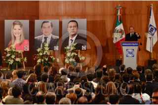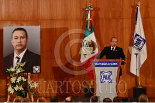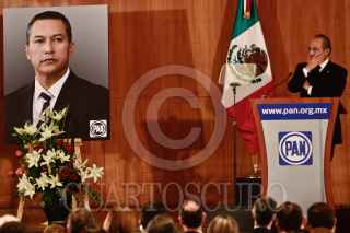 MÉXICO, D.F., 06DICIEMBRE2011.- Gustavo Madero, presidente del Partido Acción Nacional (PAN), asistió a un homenaje luctuoso a los cinco panistas fallecidos durante un accidente aereo en semanas pasadas donde murió Francisco Blake Mora, ex secretario de Gobernación. Ésto se realizó ante la presencia de cientos de personajes representativos del Partido Acción Nacional (PAN). FOTO: MISAEL VALTIERRA/CUARTOSCURO.COM