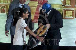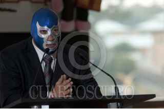 MÉXICO, D.F. 07DICIEMBRE2011.- Blue Demon Jr. hija del luchador Blue Demon recibió la tarde de ayer un reconocimiento a la fundación que dirige, "Fundación Azul" por su apoyo a la niñez mexicana realizada por la compañia farmaceútica, Procter and Gamble. FOTO: FRANCISCO RODRÍGUEZ/CUARTOSCURO.COM
