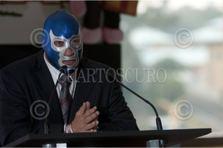 MÉXICO, D.F. 07DICIEMBRE2011.- Blue Demon Jr. hija del luchador Blue Demon recibió la tarde de ayer un reconocimiento a la fundación que dirige, "Fundación Azul" por su apoyo a la niñez mexicana realizada por la compañia farmaceútica, Procter and Gamble. FOTO: FRANCISCO RODRÍGUEZ/CUARTOSCURO.COM