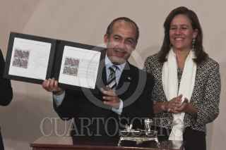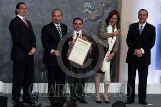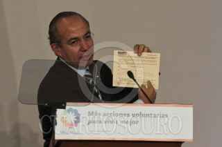MÉXICO, D.F., 07DICIEMBRE2011.- Felipe Calderón, Presidente de México, durante la ceremonia de voluntaria y solidaria 2011 en la residencia oficial de los Pinos. FOTO: ENRIQUE ORDÓÑEZ/CUARTOSCURO.COM
