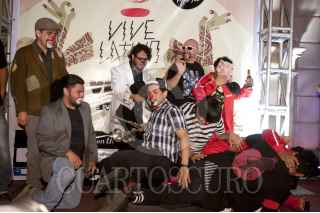 MÉXICO, D.F. 07DICIEMBRE2011.- La mañana de hoy se presentó mediante un video transmitido desde el Teatro Metropolitan el cartel del la edición 2012 del Festival Vive Latino que año con año se realiza en el Foro Sol y que tiene programado realizarse del 23 al 25 de Marzo. Entre las bandas destaca "Eddie y los Grasosos" FOTO: FRANCISCO RODRÍGUEZ/CUARTOSCURO.COM