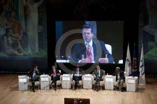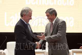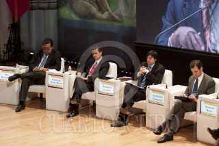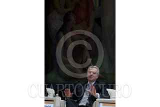 MÉXICO, D.F., 07DICIEMBRE2011.- Santiago Creel, precandidato del Partido Acción Nacional (PAN) durante el panel de Financiamiento de la política y desigualdad social del Foro de la Democracia Latinoamericana que se realizo en el Antiguo Colegio de San Ildefonso. FOTO: RODOLFO ANGULO/CUARTOSCURO.COM