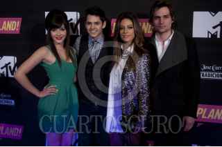 MÉXICO, D.F.,08DICIEMBRE2011.- Los actores Sara Cobo, Ricardo Abarca, Manuela González y Jon Ecker son los protagonistas de la telenovela producida por MTv, "Popland" que la noche de ayer finalizó transmisiones en conocido centro comercial. FOTO: FRANCISCO RODRÍGUEZ/CUARTOSCURO.COM