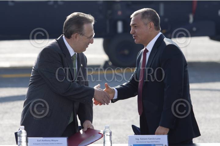 MÉXICO, D.F., 08DICIEMBRE2011.- El gobierno estadunidense entregó un helicóptero tipo UH-60M Black Hawk a la Secretaria de Seguridad Federal, en el marco del Plan de Cooperación Mérida. Esta aeronave servirá para el combate al crimen organizado y se recibió en el Centro de Alto mando de la Policía Federal. FOTO: MOISÉS PABLO/CUARTOSCURO.COM