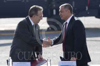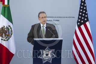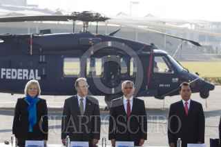 MÉXICO, D.F., 08DICIEMBRE2011.- El gobierno estadunidense entregó un helicóptero tipo UH-60M Black Hawk a la Secretaria de Seguridad Federal, en el marco del Plan de Cooperación Mérida. Esta aeronave servirá para el combate al crimen organizado y se recibió en el Centro de Alto mando de la Policía Federal. FOTO: MOISÉS PABLO/CUARTOSCURO.COM