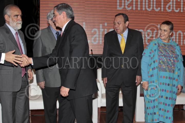MÉXICO, D.F., 08DICIEMBRE2011.- Diego Fernández de Cevallos, ex candidato a la Presidencia por el PAN junto a Alejandro Poire, Secretario de Gobernación durante el II Foro de la Democracia Latinoamericana que tuvo lugar en el anfiteatro Simón Bolívar del Antiguo Colegio de San Idelfonso. FOTO: ENRIQUE ORDÓÑEZ/CUARTOSCURO.COM
