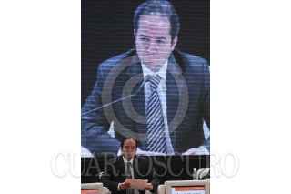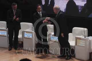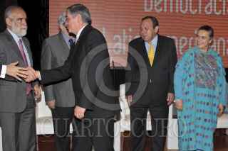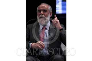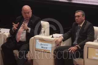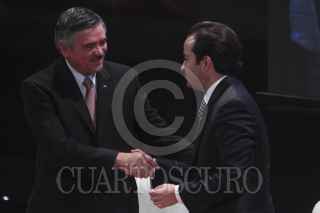 MÉXICO, D.F., 08DICIEMBRE2011.- Diego Fernández de Cevallos, ex candidato a la Presidencia por el PAN junto a Alejandro Poire, Secretario de Gobernación durante el II Foro de la Democracia Latinoamericana que tuvo lugar en el anfiteatro Simón Bolívar del Antiguo Colegio de San Idelfonso. FOTO: ENRIQUE ORDÓÑEZ/CUARTOSCURO.COM