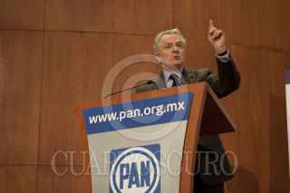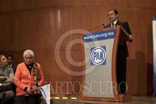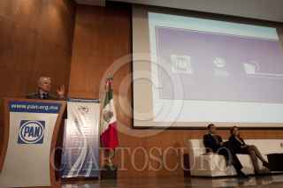MÉXICO, D.F., 08DICIEMBRE2011.- El panista Ernesto Cordero, aspirante a la presidencia de la República, participó en el Tercer Foro "Transformando la Política y generando bienes públicos", organizado por la Fundación Preciado Hernández, que se realizó en el auditorio Manuel Gómez Morín de la sede nacional del blanquiazul. FOTO: MOISÉS PABLO/CUARTOSCURO.COM