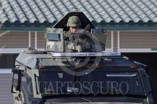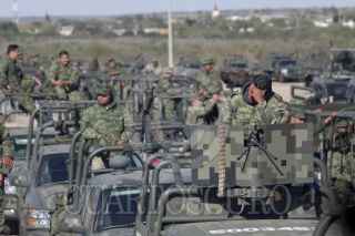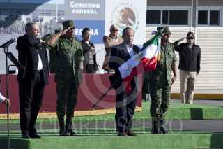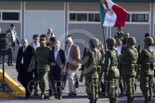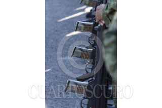 CIUDAD MIER, TAMAULIPAS, 08DICIEMBRE2011.- Elementos del Ejercito Mexicano montan guardia durante el abanderamiento del 105 Batallón de Infanteria e inauguración de una base militar que se realizo en Ciudad Mier, Tamaulipas. FOTO: RODOLFO ANGULO/CUARTOSCURO.COM