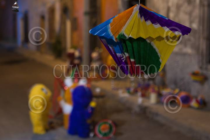 QUERÉTARO, QUERÉTARO, 09DICIEMBRE2011.- Los vecinos del tradicional barrio de Santa Ana, en el corazón de la capital del estado; adornan las calles con piñatas y faroles, a una semana de que inicien las tradicionales Posadas, de acuerdo al calendario de festividades. Olvidando cualquier divergencia política o de estatus social, se aprestan para cooperar entre todos con los gastos de los adornos y el montaje de los mismos. Esta tradición de "pedir posada" del culto católico se celebra con nueve días de antelación a la navidad, con nueve rosarios y novenas refiriendo a los nueve meses de gestación de Jesús de Nazareth, así como el camino de la sagrada familia de Galilea a Belén. La celebración lleva además de los diferentes cánticos, los tradicionales adornos y las piñatas de 7 picos por las calles. A los niños se les reparte lo aguinaldos (dulces y fruta) después de los rezos durante la convivencia. FOTO: DEMIAN CHÁVEZ/CUARTOSCURO.COM