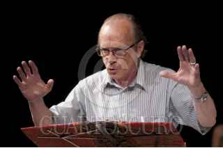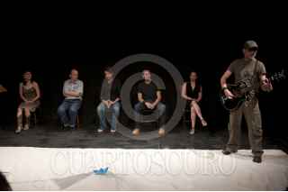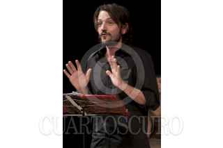 MÉXICO, D.F., 09DICIEMBRE2011.- El músico, Jaime López es Aedo, en "Homero,Ilíada" de Alessandro Baricco, 21 monólogos que sintetizan este clásico y que la tarde de hoy se presentó en el Foro Shakespeare donde tendrá temporada este mes de diciembre todo los viernes y sábados. FOTO: FRANCISCO RODRÍGUEZ/CUARTOSCURO.COM
