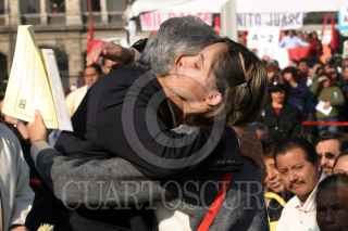 México, D.F., 10DICIEMBRE2004.- Habitantes de diferentes delegaciones recibieron créditos para impulsar a microempresas por parte del jefe capitalino, en la plancha del Zócalo. FOTO: Moisés Pablo/CUARTOSCURO.COM