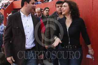 ZACATECAS, ZACATECAS, 11DICIEMBRE2011.- Los gobernadores, Miguel Alonso Reyes de Zacatecas e Ivonne Ortega de Yucatan durante la Corrida de Toros de la Feria Regional de Guadalupe que tuvo lugar en la plaza de toros del estado. FOTO: CUARTOSCURO.COM