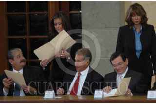 MEXICO, D.F. 10DICIEMBRE2004.- El presidente Vicente Fox y su esposa Marta Sahagún de Fox durante la presentación del Programa Nacional de Derechos Humanos. FOTO: CUARTOSCURO.COM