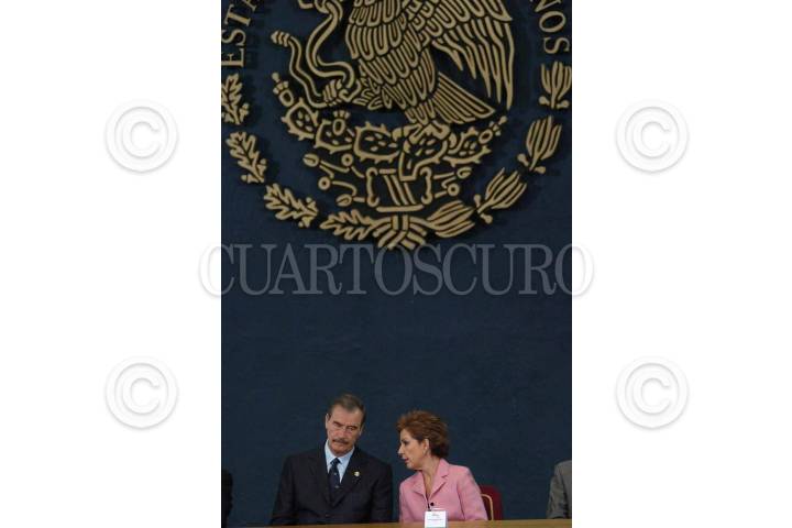 MEXICO, D.F. 10DICIEMBRE2004.- El presidente Vicente Fox y su esposa Marta Sahagún de Fox durante la presentación del Programa Nacional de Derechos Humanos. FOTO: CUARTOSCURO.COM