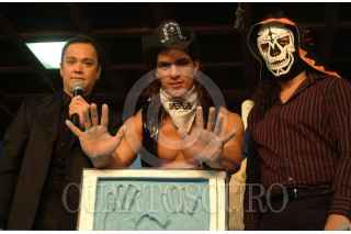 MEXICO, D.F. 10DICIEMBRE2004.- "Intocable "plasmó sus huellas en la plaza galerías acompañado de "La Parca". FOTO: Iván Stephens/CUARTOSCURO.COM