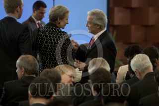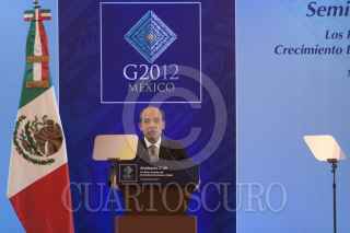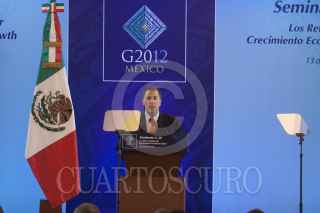 MÉXICO, D.F., 13DICIEMBRE2011.- Felipe Calderón Hinojosa, Presidente de México, encabezó la clausura del seminario del G-20 "Desafíos Actuales para el Crecimiento Económico Global", la cual se celebró en las instalaciones de la Secretaría de Relaciones Exteriores. FOTO: MOISÉS PABLO/CUARTOSCURO.COM