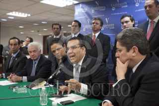 MÉXICO, D.F., 13DICIEMBRE2011.- Rafael Calderón, diputado local panista, Demetrio Sodi, delegado de Miguel Hidalgo, Mariana Gómez del Campo, coordinadora de los asambleístas del PAN en la Asamblea Legislativa, Juan Dueñas, dirigente local del blanquiazul, y Mario Palacios, delegado de Bénito Juárez, ofrecieron una conferencia de prensa en la que abordaron el tema del presupuesto para la capital del 2012. FOTO: MOISÉS PABLO/CUARTOSCURO.COM