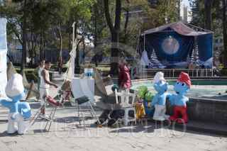 MÉXICO, D.F., 13DICIEMBRE2011.- Los comerciantes que se instalan con sus escenarios navideños para que la gente se tome la foto del recuerdo comenzaron a instalarse en las inmediaciones de la Alameda Central. Éstos tienen como fecha límite para estar ahí hasta el día 6 de Enero del próximo año y es ya una tradición anual de las fiestas decembrina en la capital. FOTO: MOISÉS PABLO/CUARTOSCURO.COM