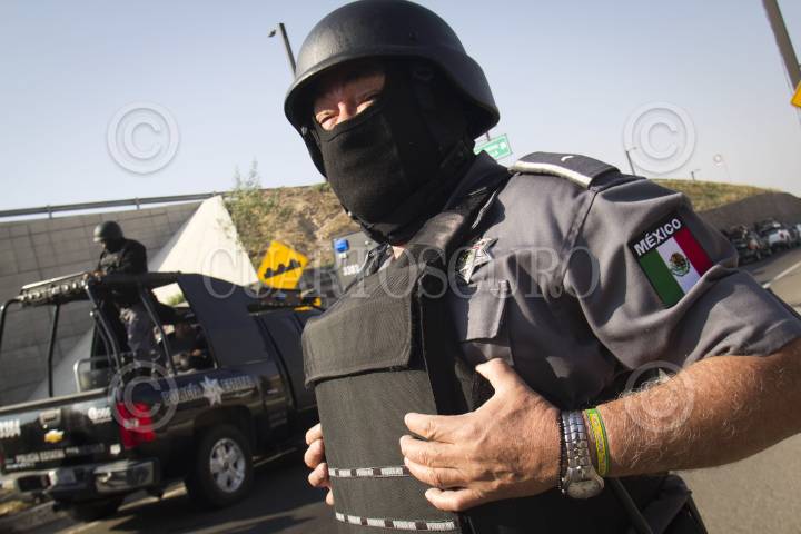 QUERÉTARO, QUERÉTARO, 14DICIEMBRE2011.- Este dia dió inicio el operativo de seguridad de la CONAGO, con la participación de las policías de Zacatecas, Aguascalientes, San Luis Potosí, Querétaro, Ejército Mexicano, PGR, PGJ. En el operativo dieron el banderazo de salida los gobernadores Cesar Duarte, José Luis Torranzo Y José Calzada Presidente de la CONAGO. FOTO: DEMIAN CHÁVEZ/CUARTOSCURO.COM