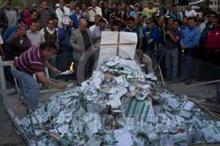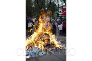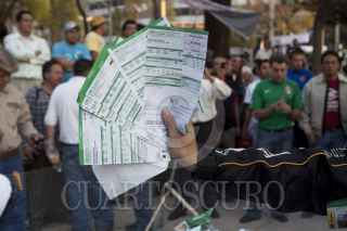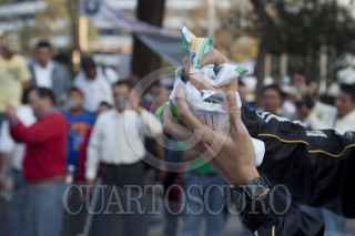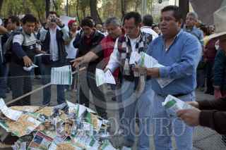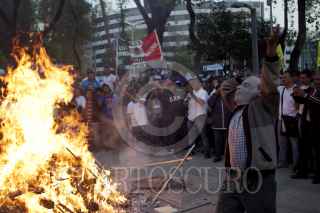 MÉXICO, D.F., 14DICIEMBRE2011.- Integrantes del Sindicato Mexicano de Electricistas (SME) quemaron recibos de cobro de la Comisión Federal de Electricidad (CFE) por las altas tarifas que cobran a los usuarios; esta protesta se realizo en la esquina de Insurgentes y Reforma. FOTO: RODOLFO ANGULO/CUARTOSCURO.COM