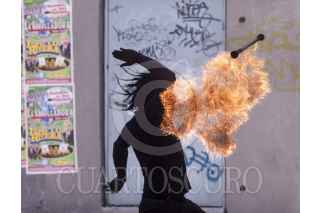 MÉXICO, D.F., 15DICIEMBRE2011.- Un malabarista juega con fuego en un crucero de la ciudad de México para ganarse algunas monedas. FOTO: ISAAC ESQUIVEL/CUARTOSCURO.COM