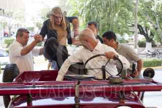 VILLAHERMOSA, TABASCO, 17DICIEMBRE2011.- La actriz y cantante Laura León "La Tesorito" acudió el día de hoy a la producción de un comercial a beneficio de la fundación Isabel de la Parra Alianza por Tabasco el cual lo realizo junto a Jaime Mier y Teran Suárez presidente de dicha agrupación y precandidato del PRI a la gobernatura local. FOTO: MARCO POLO GUZMÁN HERNÁNDEZ/CUARTOSCURO.COM