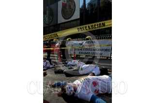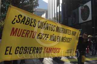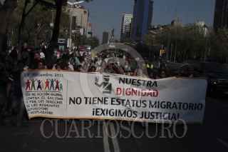 MÉXICO, D.F., 18DICIEMBRE2011.- Un grupo de personas se manifestaron por la avenida reforma a la Procuraduria General de Justicia de la República para exigir justicia a los migrantes que atraviesan por nuestro país en busca del sueño americano. FOTO: ENRIQUE ORDÓÑEZ/CUARTOSCURO.COM