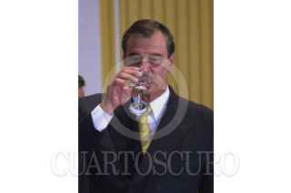 Con copa en mano, seguro de buenos deseos y atinadas intencione. El 2001 se termina, consabido por muchos, asido en razón de la experiencia. ¿ Y para el 2002?, ya lo dijo el señor Presidente Vicente Fox, -Estamos en éso. Salud. FOTO: Cuartoscuro