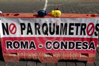 MÉXICO, D.F., 20DICIEMBRE2011.- Un grupo de personas se manifestaron en la glorieta de los cibeles para exigir que no autorice el gobierno capitalino la norma que permitirá se instalen parquimetros en las colonias Roma y Condesa. FOTO: ENRIQUE ORDÓÑEZ/CUARTOSCURO.COM