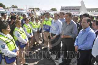 PUEBLA, PUEBLA, 20DICIEMBRE2011.- Salomón Chertorivsky, secretario de Salud, en compañía de Rafael Moreno Valle, gobernador del estado, pusieron en marcha el Sistema de Urgencias Médicas Avanzadas donde entregaron más de 50 ambulancias y una ambulancia aérea. FOTO: EDUARDO MORALES/CUARTOSCURO.COM