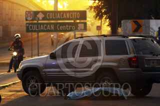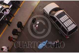 CULIACAN, SINALOA, 21DICIEMBRE2011.- Francisco Javier Félix Romero de 34 años fue asesinado a balazos mientras se encontraba parado, a un lado de su camioneta, en el estacionamiento del mercado Humaya. Criminalistas que acudieron al sitio recolectaron ocho casquillos de calibre 45 como evidencia. Una vez que el representante del Ministerio Público especializado en homicidios dolosos diera fe de los hechos, el cuerpo fue trasladado al Servicio Médico Forense. FOTO: RASHIDE FRIAS/CUARTOSCURO.COM