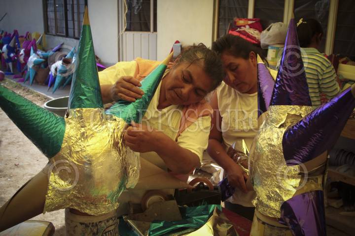 CUAUTITLAN IZCALLI, ESTADO DE MÉXICO, 23DICIEMBRE2011.- Como cada año los artesanos dedicados a la elaboración de piñatas ubicados en las orillas de la carretera Cuautitlán-Melchor Ocampo, mejor conocida como el "Kilómetro de las Piñatas", trabajan a marchas forzadas para ofertar sus productos en las posadas navideñas. Esta zona es una de las pocas que mantiene dicha tradición en la entidad. FOTO: ENRIQUE ORDÓÑEZ/CUARTOSCURO.COM