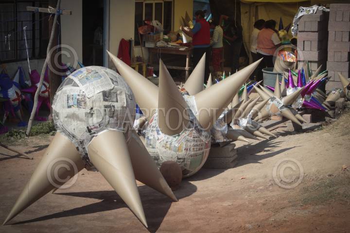 CUAUTITLAN IZCALLI, ESTADO DE MÉXICO, 23DICIEMBRE2011.- Como cada año los artesanos dedicados a la elaboración de piñatas ubicados en las orillas de la carretera Cuautitlán-Melchor Ocampo, mejor conocida como el "Kilómetro de las Piñatas", trabajan a marchas forzadas para ofertar sus productos en las posadas navideñas. Esta zona es una de las pocas que mantiene dicha tradición en la entidad. FOTO: ENRIQUE ORDÓÑEZ/CUARTOSCURO.COM