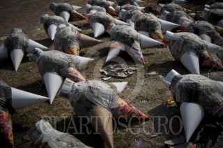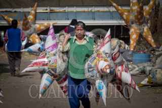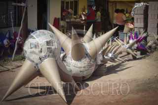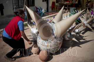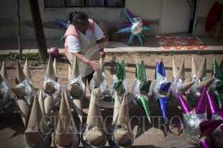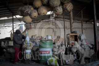 CUAUTITLAN IZCALLI, ESTADO DE MÉXICO, 23DICIEMBRE2011.- Como cada año los artesanos dedicados a la elaboración de piñatas ubicados en las orillas de la carretera Cuautitlán-Melchor Ocampo, mejor conocida como el "Kilómetro de las Piñatas", trabajan a marchas forzadas para ofertar sus productos en las posadas navideñas. Esta zona es una de las pocas que mantiene dicha tradición en la entidad. FOTO: ENRIQUE ORDÓÑEZ/CUARTOSCURO.COM