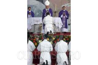 GUADALAJARA, JALISCO, 24DICIEMBRE2011.- Esta mañana en una Ceremonia magna encabezada por el Sr. Cardenal Juan Sandoval Iñiguez, 44 nuevos Diáconos se ordenaron; 41 de ellos pertenecientes al Seminario Mayor de Guadalajara y tres procedentes de Angola, África en la Parroquia de San Bernardo. FOTOS- FERNANDO CARRANZA GARCIA.