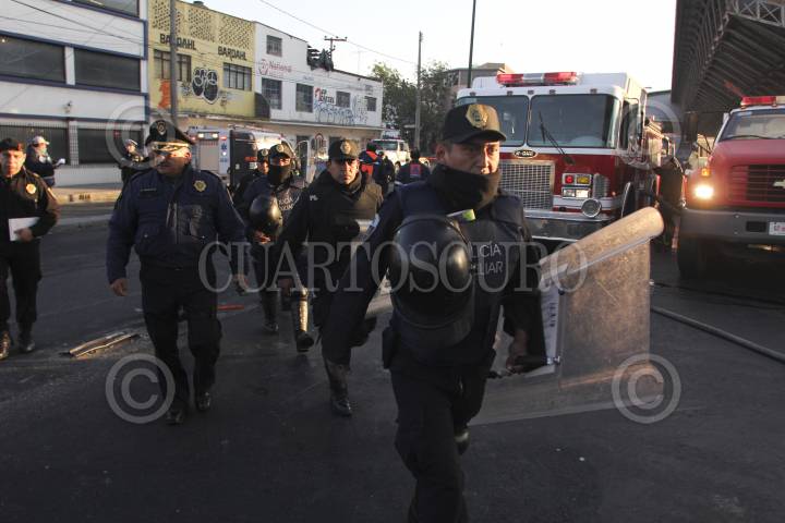 MÉXICO, D.F., 27DICIEMBRE2011.- Una pipa cargada con unos 37 mil litros de ácido clorhídrico volcó en carriles centrales de la Avenida Oceanía, al cruce con la calle de Japón en la colonia Transval de la delegación Venustiano Carranza. Granaderos de la SSPDF y elementos de protección civil desalojaron a familias de calles aledañas y cercaron el perímetro tras el intenso olor que despedía dicho químico. Más de ocho horas tardaron para retirar el pesado vehículo. FOTO: SAÚL LÓPEZ/CUARTOSCURO.COM