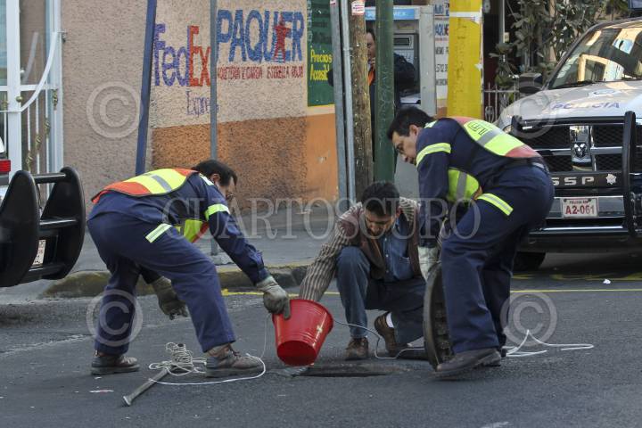 MÉXICO, D.F., 27DICIEMBRE2011.- Una pipa cargada con unos 37 mil litros de ácido clorhídrico volcó en carriles centrales de la Avenida Oceanía, al cruce con la calle de Japón en la colonia Transval de la delegación Venustiano Carranza. Granaderos de la SSPDF y elementos de protección civil desalojaron a familias de calles aledañas y cercaron el perímetro tras el intenso olor que despedía dicho químico. Más de ocho horas tardaron para retirar el pesado vehículo. FOTO: SAÚL LÓPEZ/CUARTOSCURO.COM