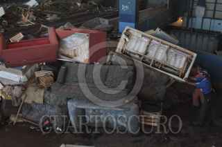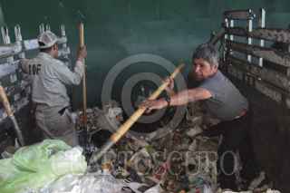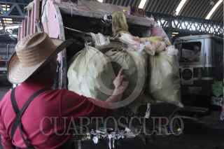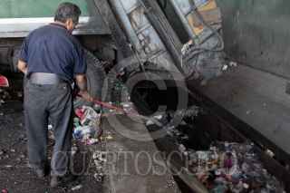 MÉXICO, D.F., 27DICIEMBRE2011.- La estación de Transferencia de la delegación Cuauhtemoc en Calzada La viga en su cruce con Eje 3 Sur, en los últimos día ha recibido decenas de camiones donde trabajadores los descargan y llenan los trailers contenedores de basura. La situación de los desechos de la metropoli ha sufrido un re-acomodo debido al cierre del bordo poniente pero esto solo es temporal en lo que se estabiliza aseguran los camioneros y trabajadores del lugar. FOTO: ENRIQUE ORDÓÑEZ/CUARTOSCURO.COM