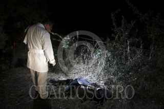 CULIACAN, SINALOA, 28DICIEMBRE2011.- Dos personas fueron localizadas sin vida por un camino de terraceria a un costado del fraccionamiento cedro en las inmediaciones de Culiacancito; hasta el momento las victimas no han sido identificadas, en el lugar se encontraron decenas de casquillos AK-47, las victimas presentaban signos de tortura, estaban amarrados de pies y manos con una tipo manguera, diferentes cuerpos policíacos acudieron al lugar para dar fe y ordenar que los cuerpos fueran trasladados a la SEMEFO. FOTO: RASHIDE FRIAS/CUARTOSCURO.COM