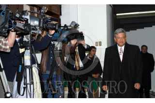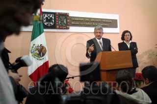 MEXICO, D.F. 22DICIEMBRE2004.- Andrés Manuel López Obrador, jefe de Gobierno capitalino y Florencia Serrania, directora del Sistema de Transporte Metro, durante la conferencia matutina ofrecida a los medios de comunicación. FOTO: Sandra Perdomo/CUARTOSCURO.COM